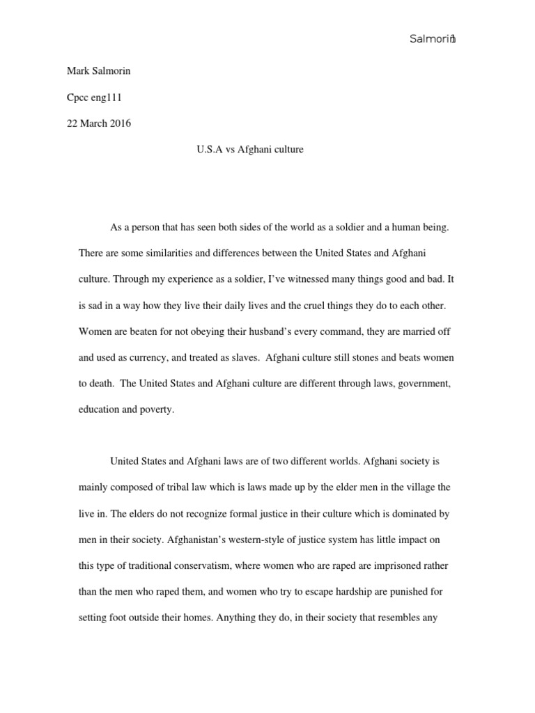 · Afghanistan Essay main religion in Afghanistan which is practiced by about 90% of the population. Their main tradition is the teaching of their religion. Muslims pray 5- times a day and that’s what they do through their daily lives Afghanistan is located in Southern Asia, north and west of Pakistan, and east of Iran. It's major religions are Sunni Muslim 84%, Shi'a Muslim 15%, and other 1%. Afghanistan is a weird place and although the Taliban rules most of it there is no functioning central government, it is administered by factions The idea is to provide you with a sample similar to your Afghanistan War essay topic so that you could have a closer look at it in order to get a clear idea of what a top-notch academic work should look like. You are also advised to use the best Afghanistan War writing practices presented by professional authors and, eventually, create a top-notch paper of your own.